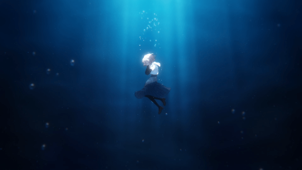 Watatabe or This Monster Wants To Eat Me, was surprisingly the only Yuri series to make this list, though admittedly I haven’t watched Watanare. I had been looking forward to this adaptation since it was announced. The manga had actually been on my list to read and the adaptation lived up to my expectations. The series follows Hinako, the lone survivor of her family’s tragic car crash. Since then she has walked through life with a dismal empty viewpoint, even to the point of being suicidal. One day while walking to school and peering out at the ocean she meets Shiori, a frank and slightly off putting girl, who quickly reveals herself to be a mermaid, and someone who wants to eat Hinako, as her flesh is some of the tastiest humans can have. Through the confrontation they strike a deal. Hinako can finally have a method to die and Shiori can eat her, but according to her she isn’t fully “ripe”. This will only happen when her emotions change and she views life as more imperative. I found this series to be extremely touching, as it addressed very sensitive issues such as grief, disassociation, depression, and suicide with such care and purpose.Though definitely not the highest end production on this list the series still does a great job conveying what it needs to in it’s visuals. Such as the ocean which was used as a beautiful recurring motif that projected Hinako’s mental state and conditions. Showing her plunge into grief and her dissociation from reality. The conflict of the narrative is greatly compelling, as we see Hinako and Shiori grow closer and Hinako opens up bit by bit, only to be contrasted by her unwavering desire to not continue living. It feels extremely heart breaking but the show weaves in just enough hope through the characters supporting her that you can’t help but root for a happy ending.